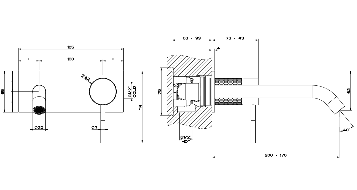 Gessi 316 Meccanica Bateria umywalkowa ścienna element zewnętrzny steel brushed 54290.239