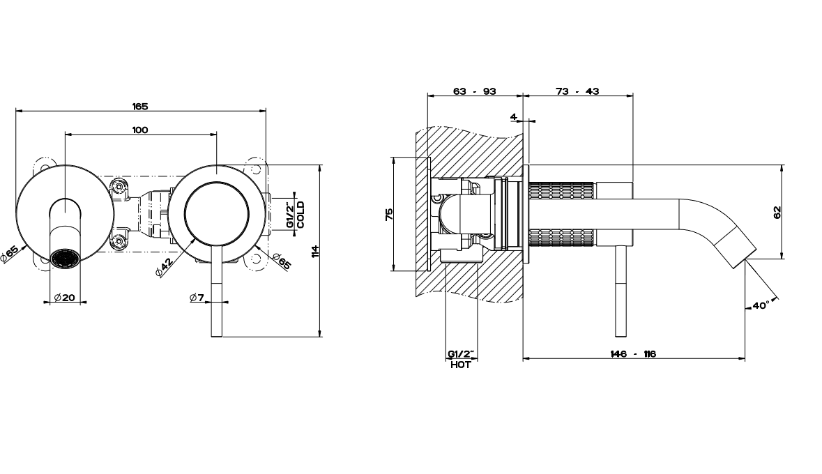 Gessi 316 Meccanica Bateria umywalkowa ścienna element zewnętrzny steel brushed 54283.239
