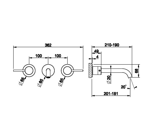Gessi 316 Meccanica Bateria umywalkowa ścienna element zewnętrzny steel brushed 54294.239