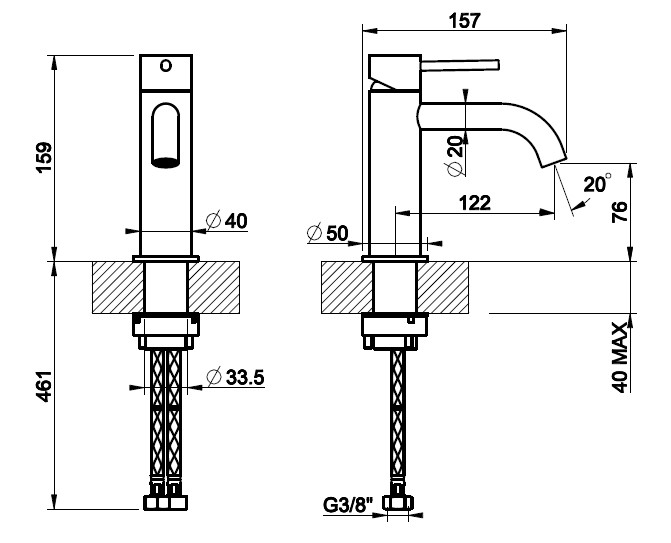 Gessi 316 Cesello Bateria umywalkowa jednootworowa bez korka steel brushed 54402.239