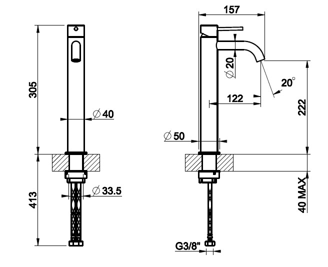 Gessi 316 Cesello Bateria umywalkowa jednootworowa bez korka steel brushed 54409.239