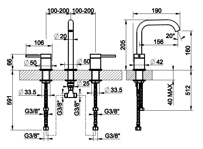 • Montaż: 3-otworowy