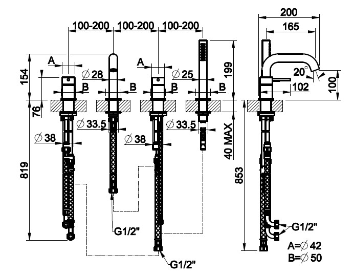 Gessi 316 Bateria wannowa 4-otworowa steel brushed 54037.239