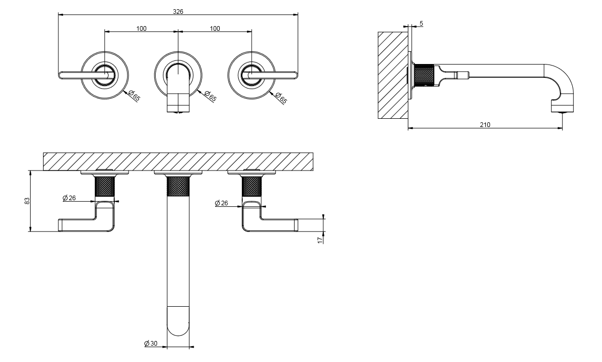 Gessi Inciso Bateria umywalkowa ścienna element zewnętrzny chrom 58090.031