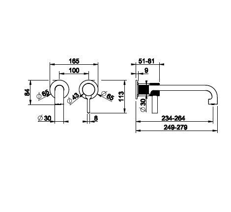 Gessi Inciso Bateria umywalkowa ścienna element zewnętrzny chrom 58089.031