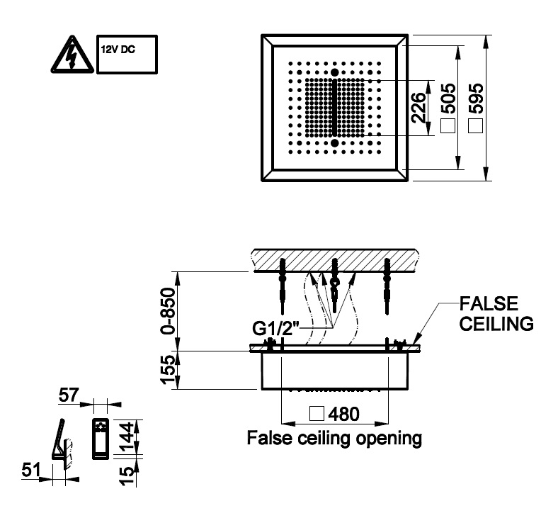 odsłonięty system wielofunkcyjny z funkcją RAINFALL / WATERFALL / MIST i efektem chromoterapii,