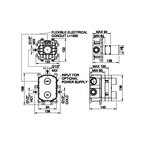 Gessi INCISO Mieszacz ścienny element podtynkowy Chrom 44665.031