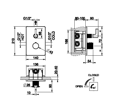 Gessi INCISO Bateria prysznicowa termostatyczna ścienna z przełącznikiem 1-drożnym element zewnętrzny Black Metal Brushed PVD 58132.707
