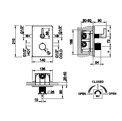 Gessi INCISO Bateria prysznicowa termostatyczna ścienna z przełącznikiem 2-drożnym element zewnętrzny Black Metal Brushed PVD 58134.707