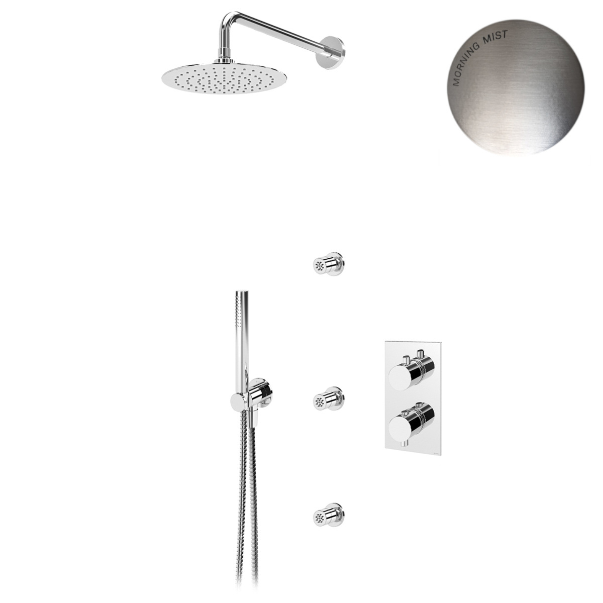 Bruma Elo Zestaw natryskowy termostatyczny podtynkowy z deszczownicą Ø 250 mm ścienną i dyszami ściennymi Morning Mist 1389103MM