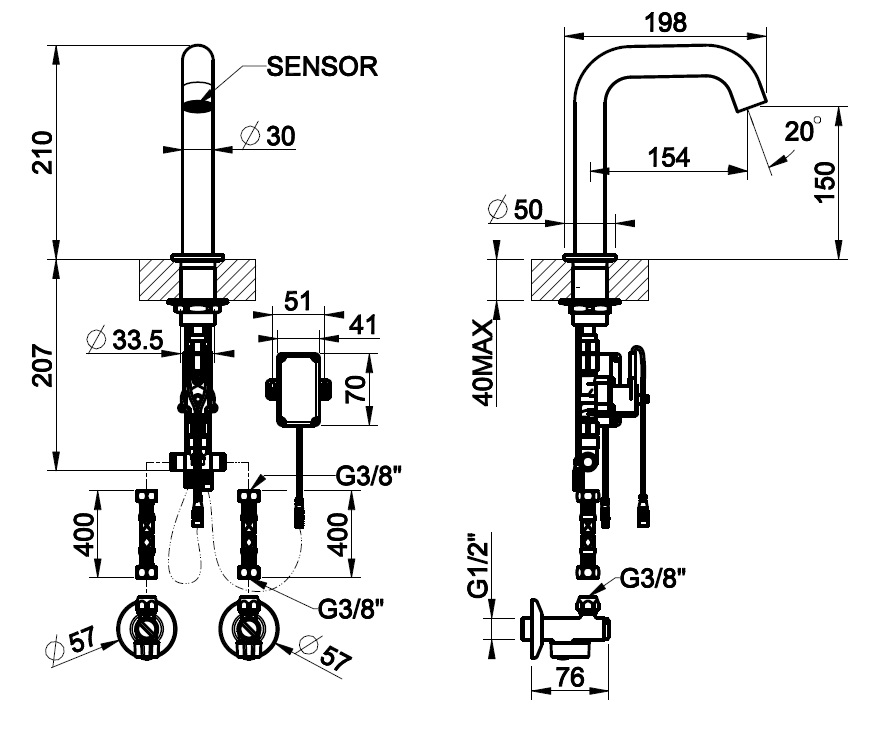 Elektroniczny bateria umywalkowa z regulacją temperatury i natężenia przepływu wody