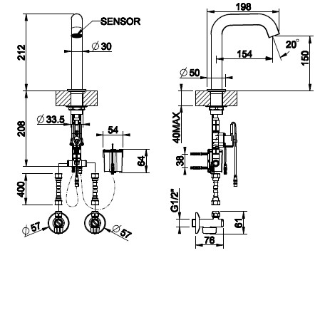 Gessi CESELLO Bateria umywalkowa elektroniczna jednootworowa element zewnętrzny steel brushed 54481.239
