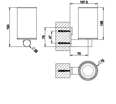 Gessi 316 Uchwyt ścienny z czarnym kubkiem steel brushed 54708.239