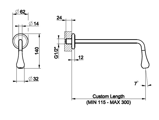 Wysięg wylewki: 11,5 - 30 cm (Na zamówienie)