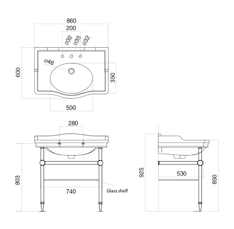 Konsola w kolorze chrom, możliwość zamówienia w kolorach: Incalux, Nickel, Dark Gold, Rose Gold, Bronze, Dark Nickel, Copper  (na zapytanie)