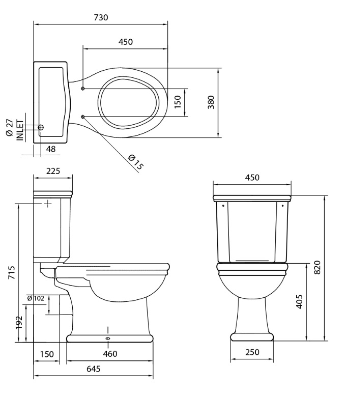 Gentry Home Coventry Spłuczka do miski WC kompaktowej stojąca Biała 2308