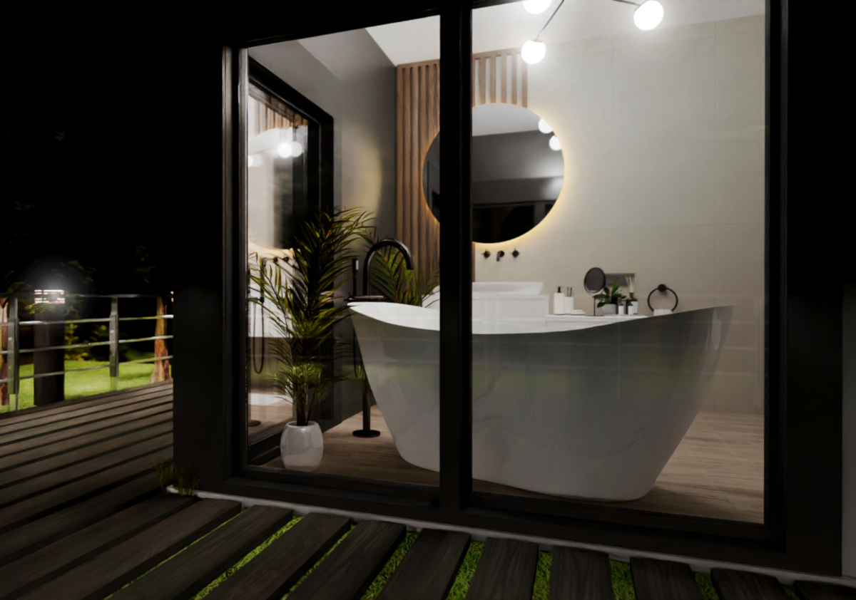 - zwężenie wanny ku dołowi nadające bryle lekkość
