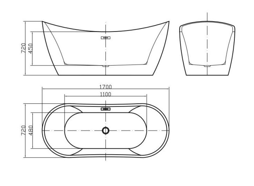 Alanad Presena Wanna wolnostojąca 170x72 cm z przelewem szczelinowym Biały AWW-002-170ZP