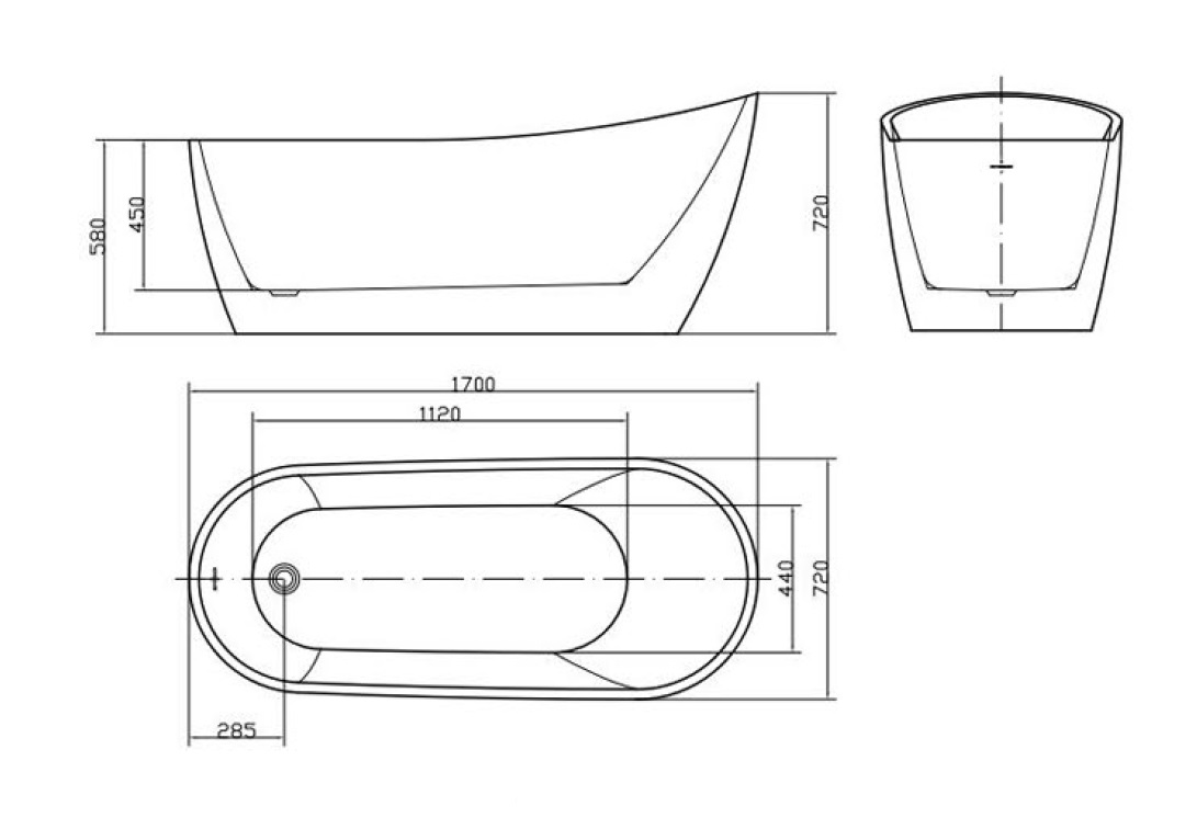 Alanad Gangotri Wanna wolnostojąca 170x72 cm z przelewem szczelinowym Biały AWW-010-170ZP