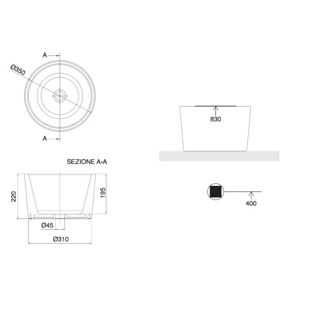Scarabeo Bucket Umywalka Ø35 biały 8808
