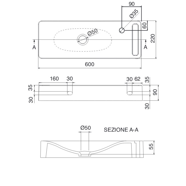 Wysokość ponad blat: 9 cm