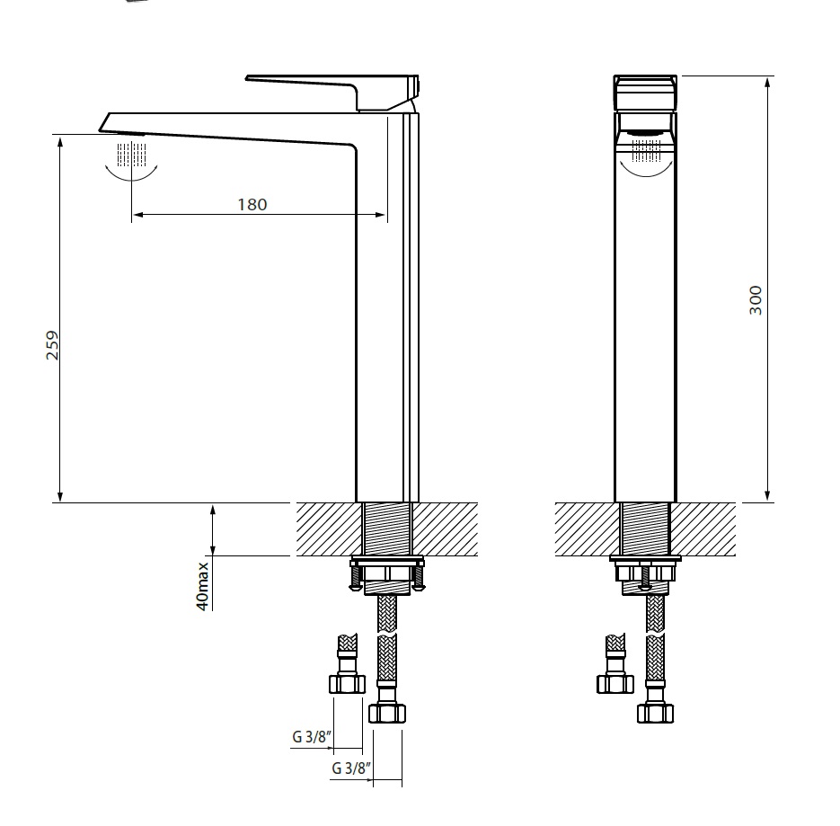 wysokość wylewki: 259 mm
