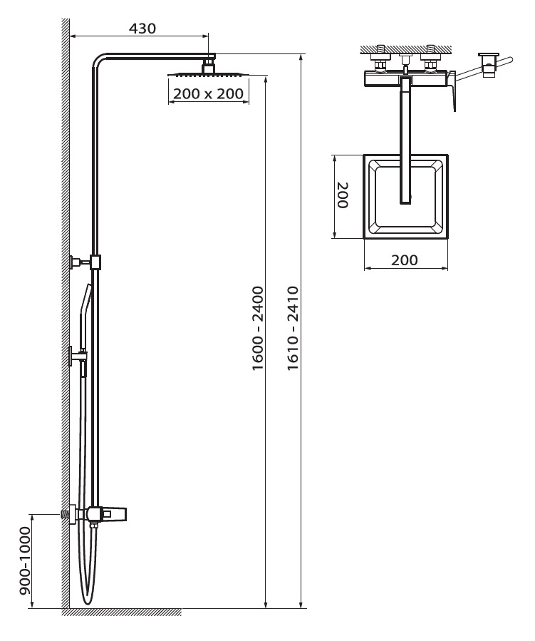 Vedo Sette Nero Kolumna z baterią mieszakową I Czarny Matowy VBD4007CZ
