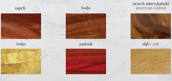 Istnieje możliwość zamówienia umywalki z dowolnego rodzaju drewna z wzornika.