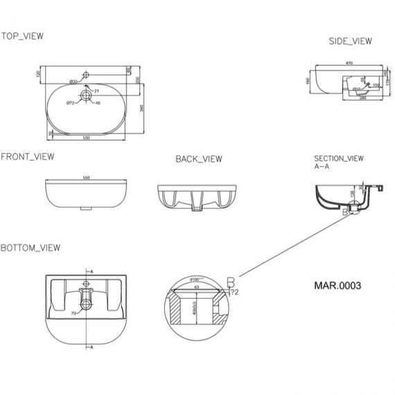 Britton Milan Umywalka ścienna 55x42 cm Biały MAR.0003