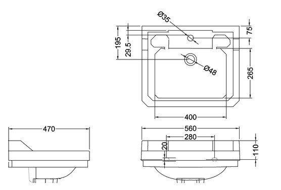 Umywalka może mieć 2 lub 3 otwory na baterię (trzeba zaznaczyć przy zamówieniu)