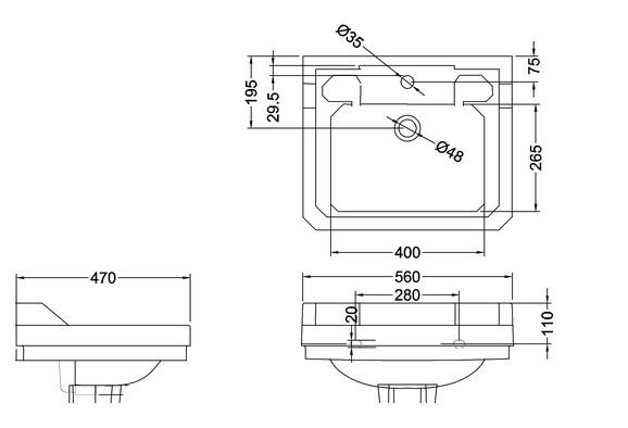 Burlington Bespoke Umywalka 56x47 Script B41THSCR
