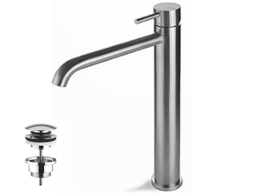 Vema Tiber Steel Bateria umywalkowa wysoka z korkiem klik-klak Stal nierdzewna V17021K