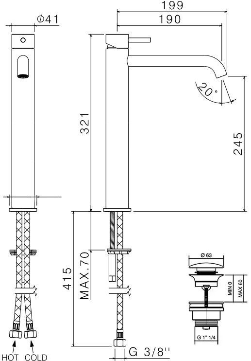 wysokość wylewki: 245 mm