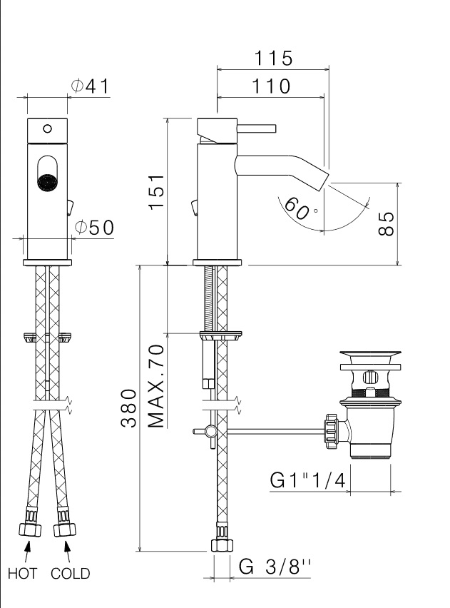 wysokość wylewki: 85 mm