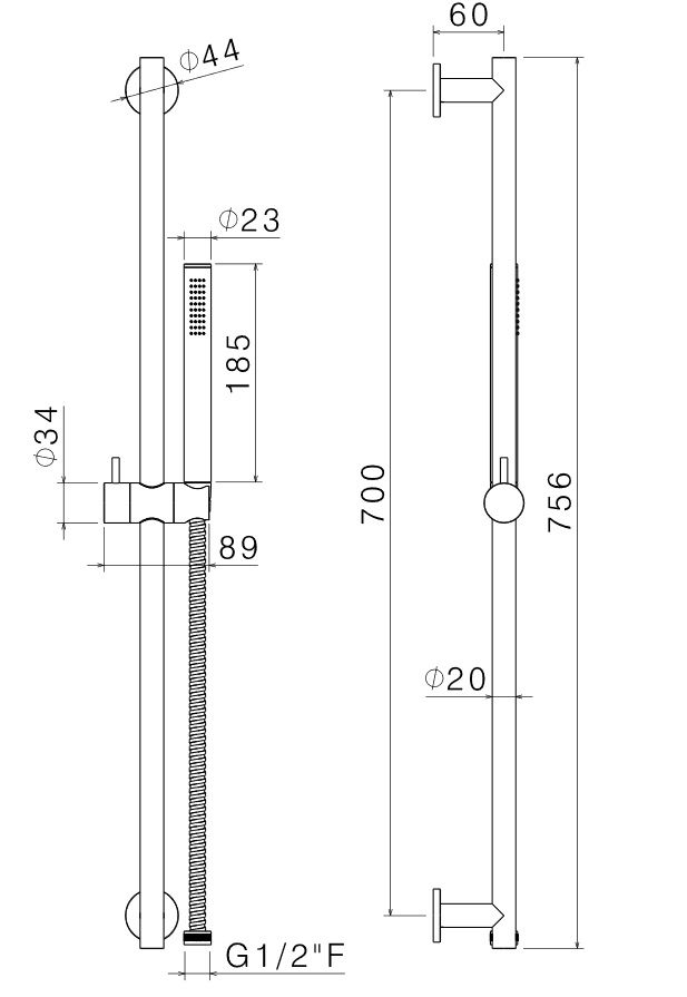 wysokość drążka: 756 mm