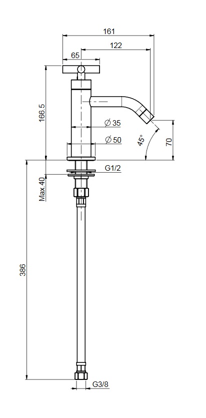 wysokość wylewki: 70 mm