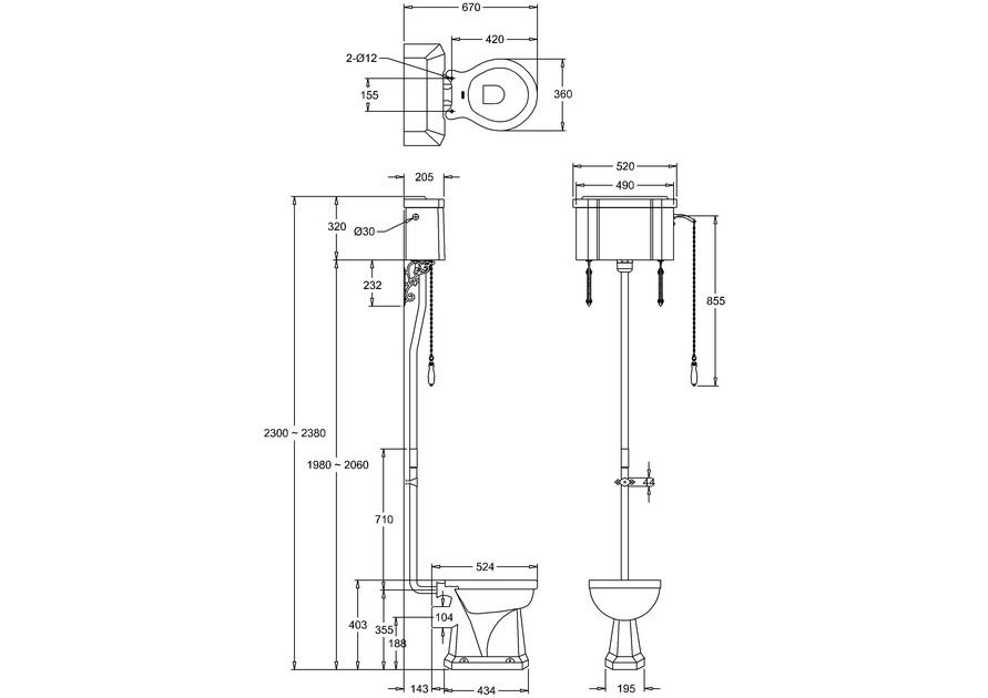 Burlington Bespoke Spłuczka ceramiczna górnopłuk 52 cm, Charleston C28SCHAR