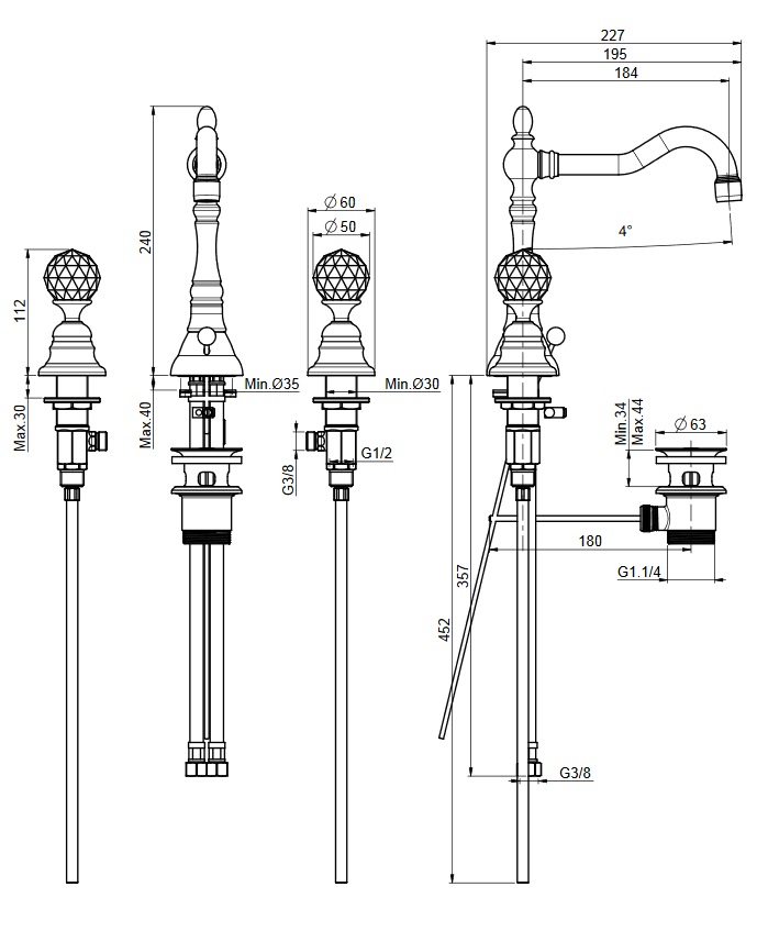 Carlo Frattini Elizabeth Chic Bateria umywalkowa 3-otworowa z obrotową wylewką Chrom F5081CCR