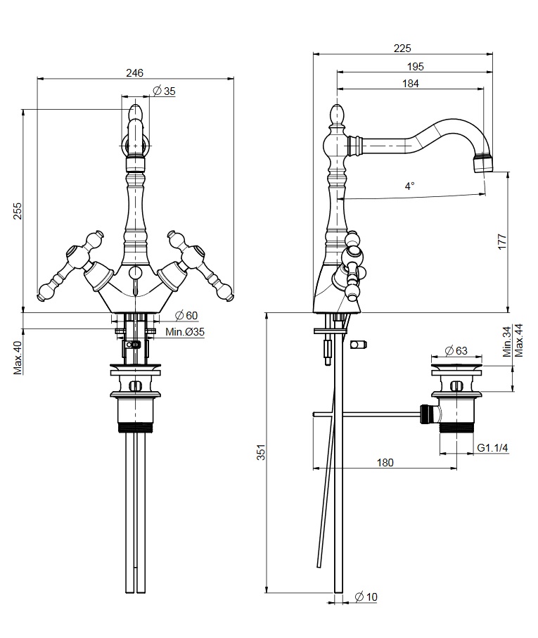 Carlo Frattini Epoque Bateria umywalkowa z obrotową wylewką Chrom F5061CR