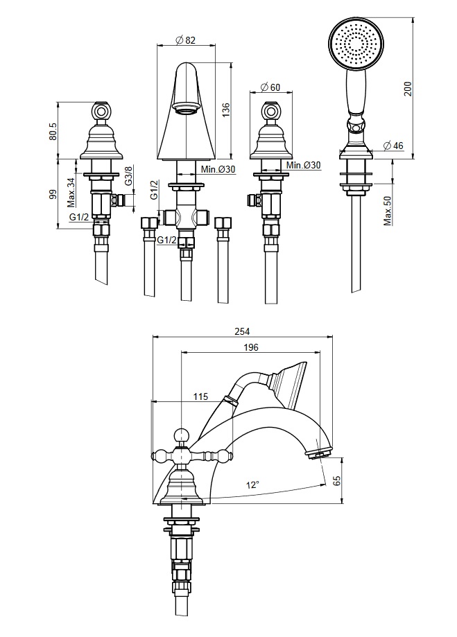 Carlo Frattini Epoque Bateria wannowa 4-otworowa ze słuchawką Chrom F5064CR