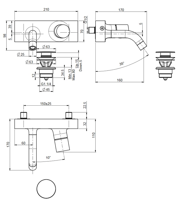 Carlo Frattini Fluid Bateria umywalkowa natynkowa z wylewką 16 cm Chrom F3861CR