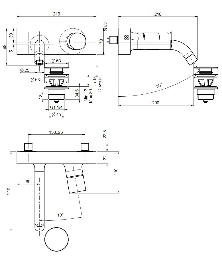 wysięg wylewki: 200 mm
