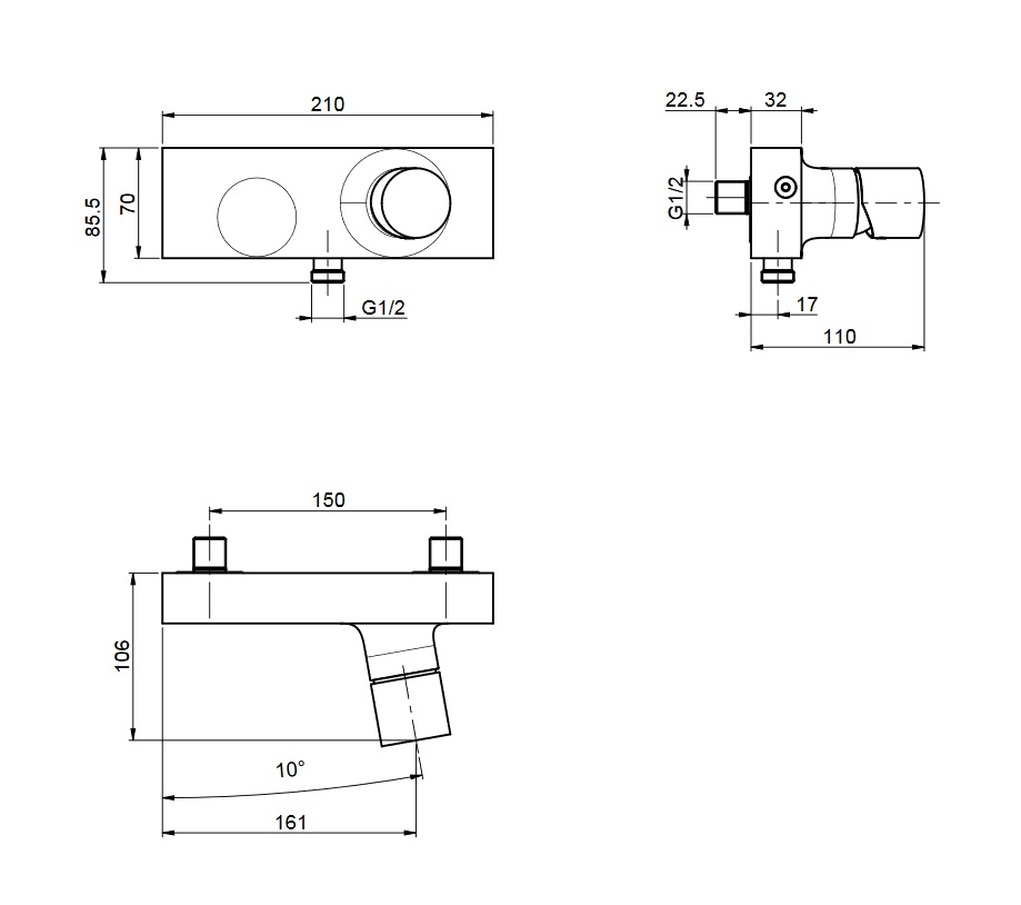 wysięg przyłącza węża: 17 mm