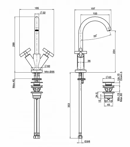 wysokość wylewki: 189,5 mm