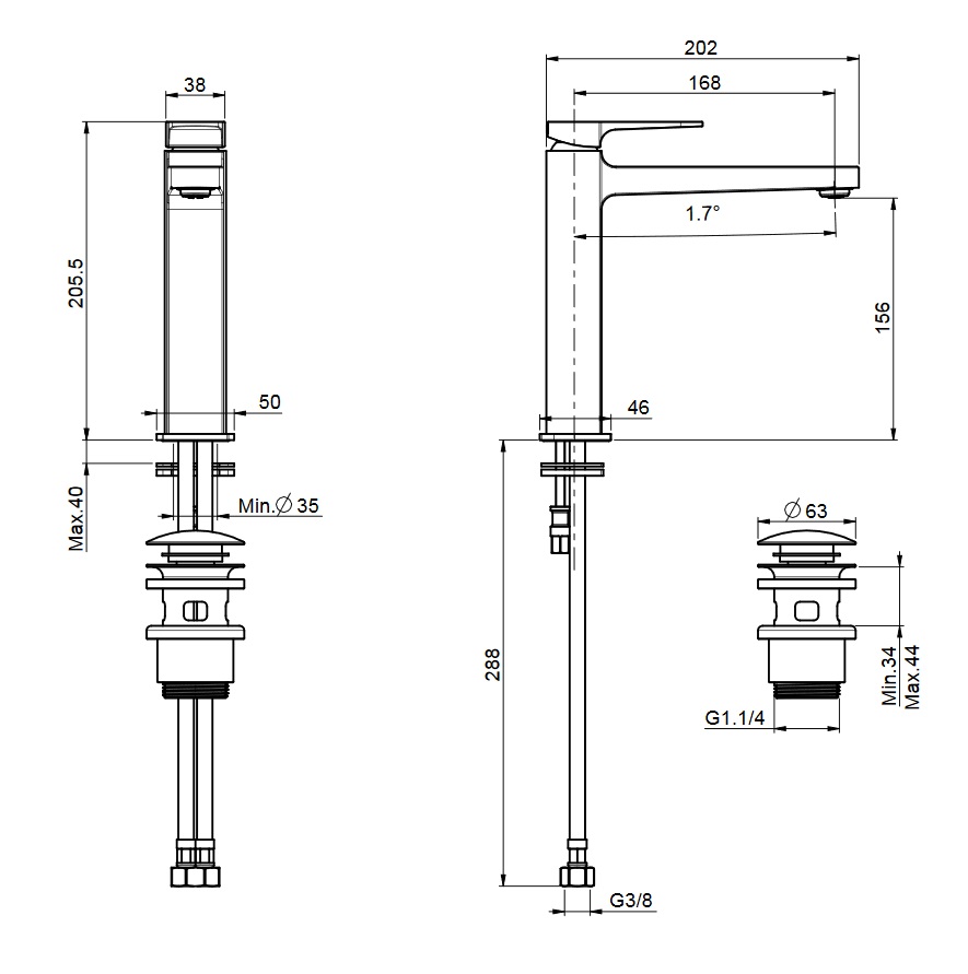 Carlo Frattini Next Bateria umywalkowa jednouchwytowa wysoka z korkiem Chrom F3941LNCR