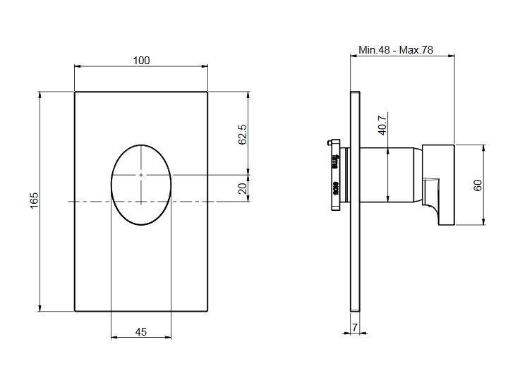 wysięg uchwytu: 48 - 78 mm