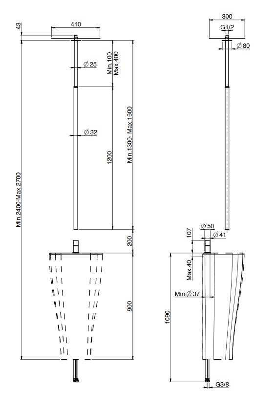 Carlo Frattini Nomos Go Bateria umywalkowa z wylewką sufitową Chrom F4191CR