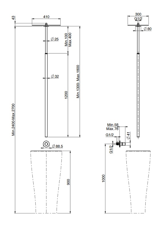 Carlo Frattini Nomos Go Bateria umywalkowa z wylewką sufitową Chrom F4181CR