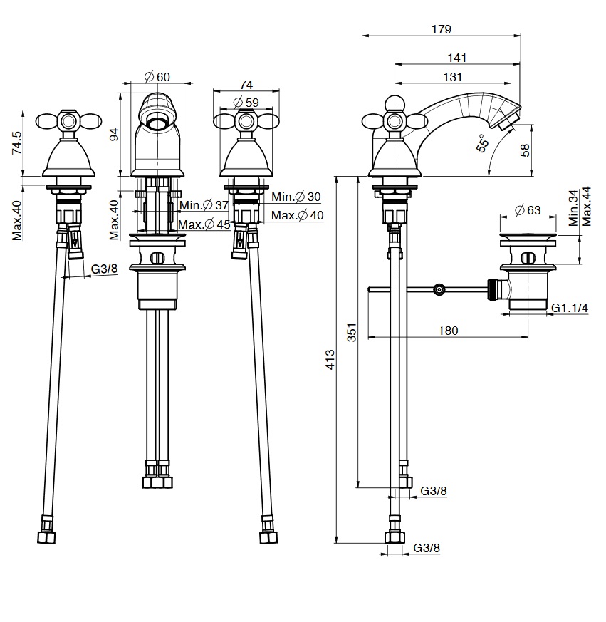• Montaż: 3-otworowy