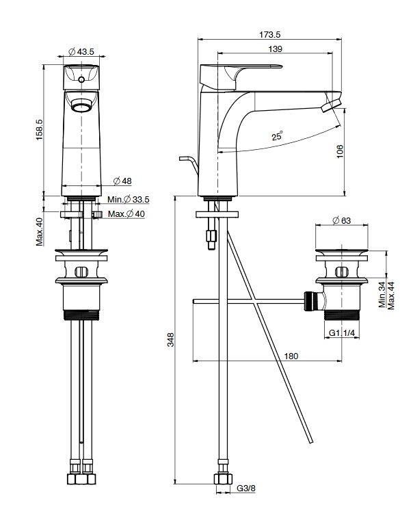 wysokość wylewki: 106 mm